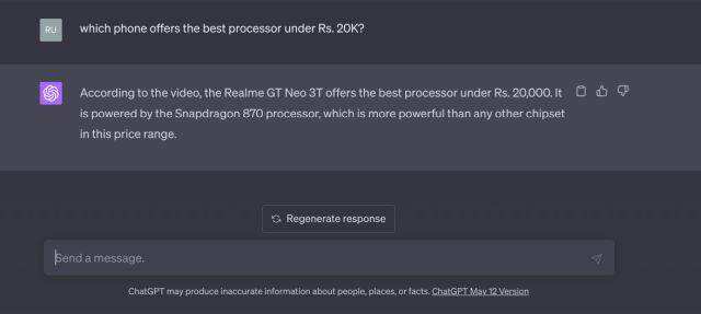 7. 您还可以聊天并提出关于YouTube视频的问题。它将从视频的背景中回答。