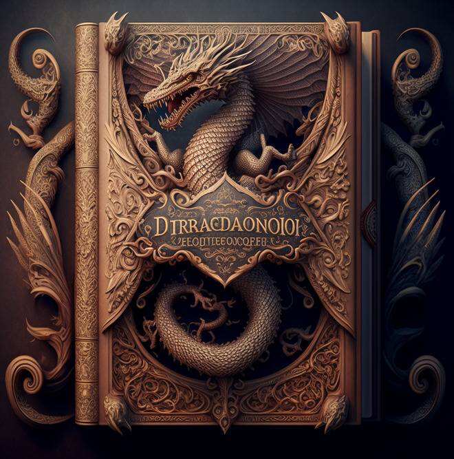 Prompt: ornate book cover to the ultimate encyclopedia of dragons