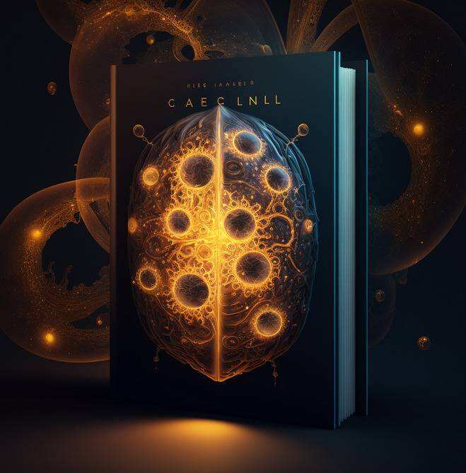 Prompt: book cover; abstract presentation of the cell, sereen and clinical, night time, epic, photorealistic render, extremely detailed and intricate, center composition, elegant, vfx, unreal engine 5, octane render, extreme contrast, extremely sharp lines