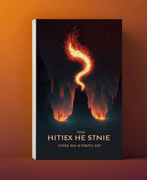 Prompt: photograph of a best selling fantasy novel book cover with fire on the cover, negative space, centered in shot, 8k