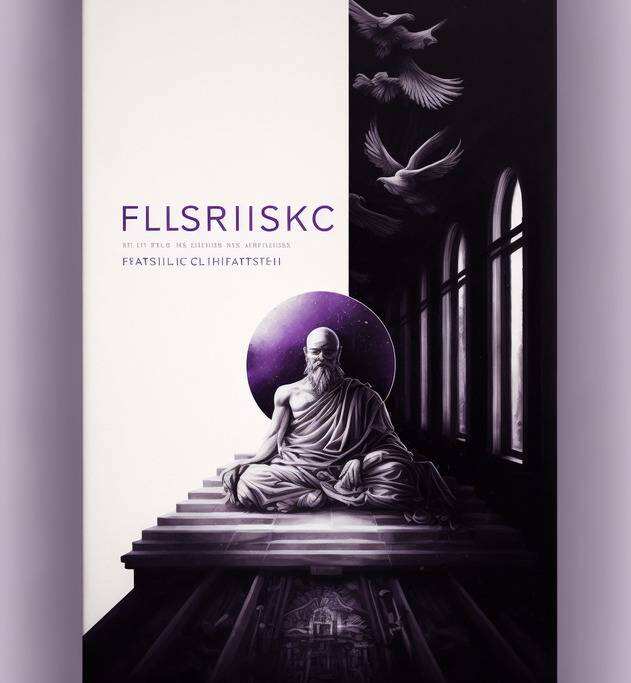 Prompt: Front cover art on an academic textbook on teachings in moral philosophy, illustration, white black purple