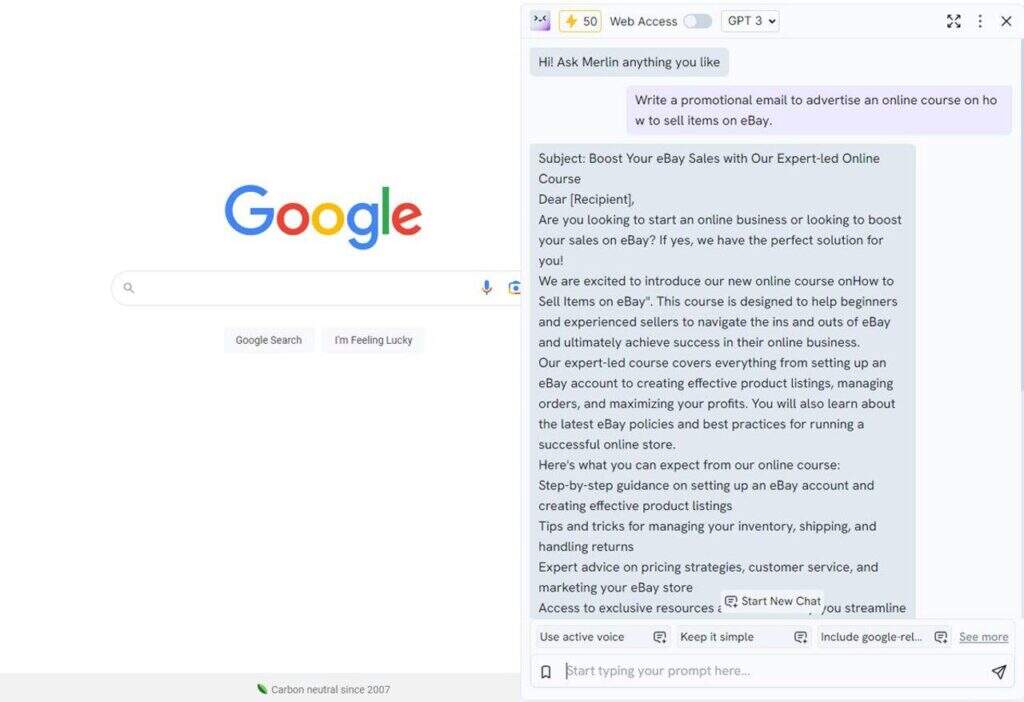 - ChatGPT for Chrome 和 Merlin 都可以在Chrome和Edge中使用。前者提供了一个聊天窗口,后者则需要一个账户,并限制了每日的查询次数,但它们都允许用户在聊天记录中输入查询并获取回应。