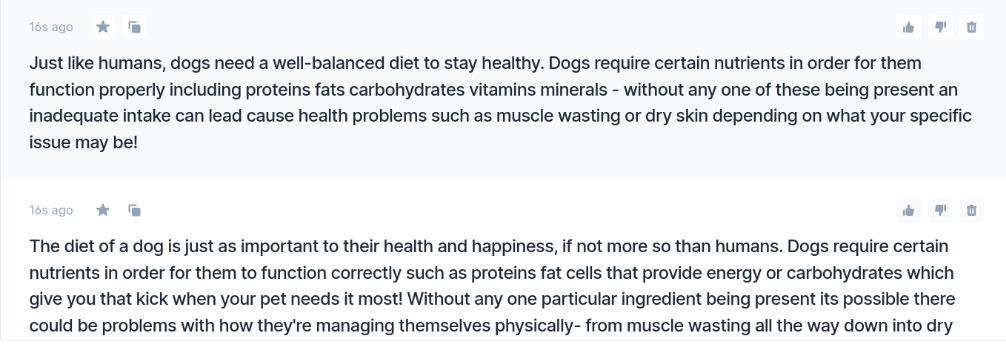 假设您想创建一篇关于适当的狗营养重要性的博客文章。我们建议小块工作。