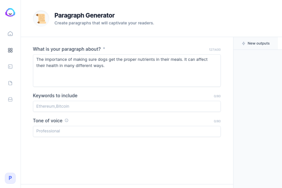 在What is your paragraph about?,可以填写简要说明。本文将有助于为AI重写器提供上下文。您还可以添加要合并的任何关键字和您喜欢的语气。