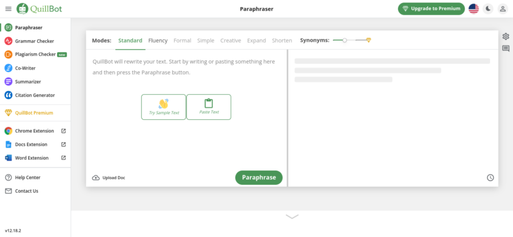 Quillbot是著名的AI重写器,具有强大的功能和工具。让Quillbot如此受欢迎和令人印象深刻的一件事是它完全免费使用。虽然提供付费订阅,但免费工具足以满足大多数基本的博客和文章写作需求。