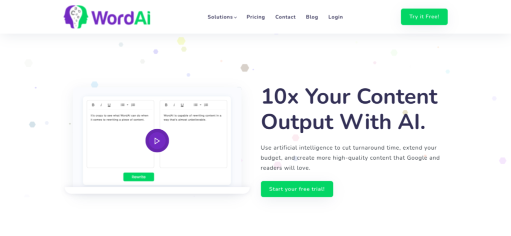 如果您正在寻找能够产生人性化内容的文章重写软件,那么WordAi值得考虑。该工具易于使用,并利用人工智能在重写之前了解单词、概念和想法的上下文。由于能够合并潜在语义索引 (LSI) 关键字,WordAI还可以使您的内容对SEO更加友好。
