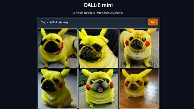 虽然我们在讨论这个问题,但如果你是一个喜欢创造愚蠢的深层假象的人,别忘了看看DALL-E Mini。受OpenAI的DALL-E启发,DALL-E Mini是一个人工智能模型,能够从文本提示中生成图像。该人工智能模型通过互联网上的数百万张图片进行训练,最终使其能够画出不存在的东西的图像。例如,这里有一个皮卡丘和巴哥犬的诅咒组合: